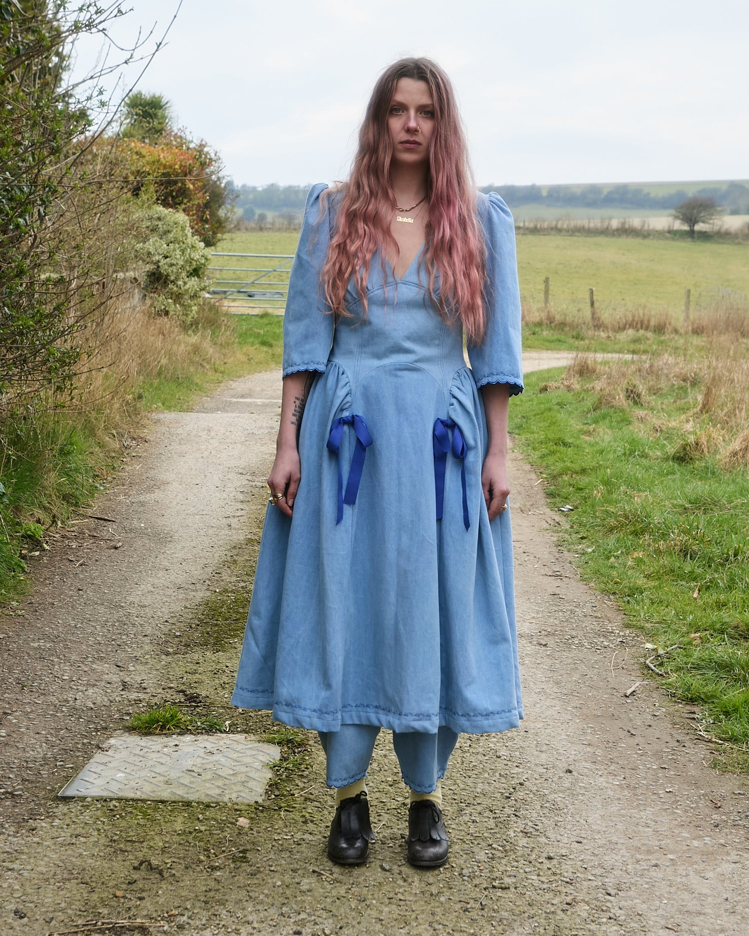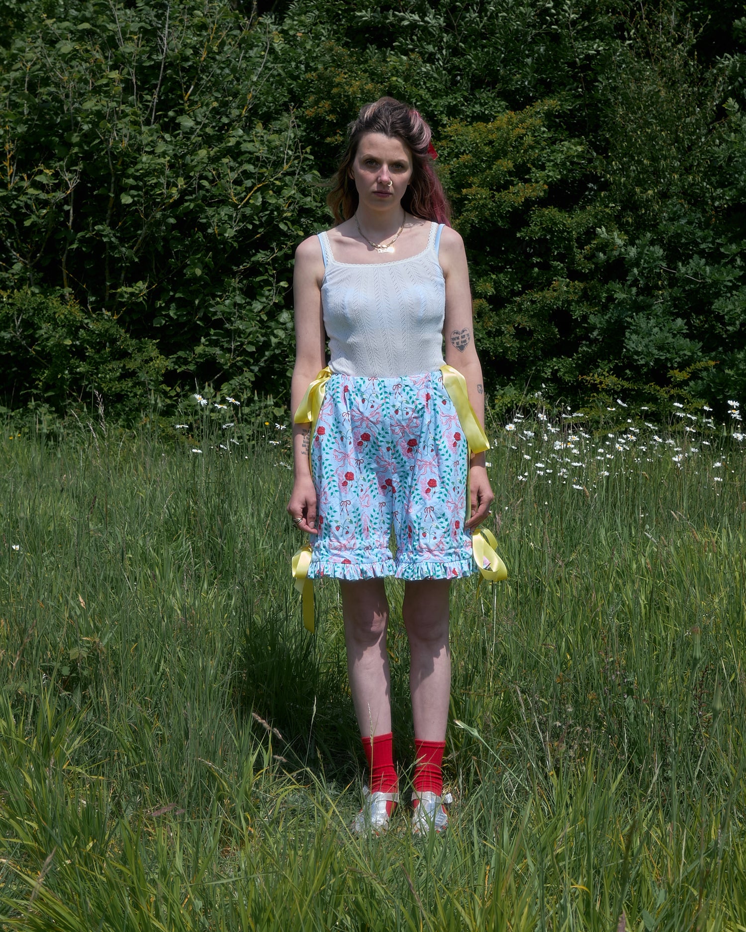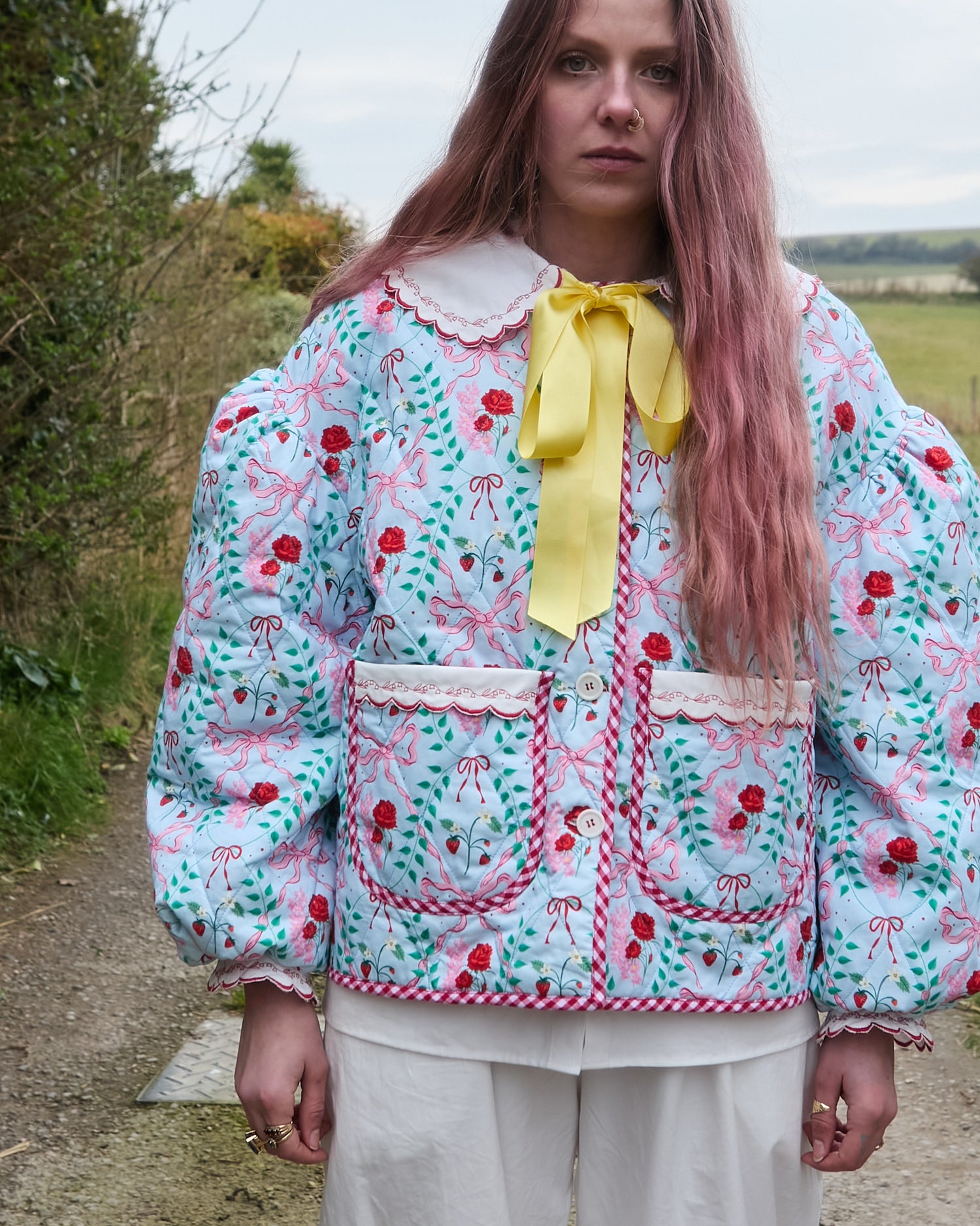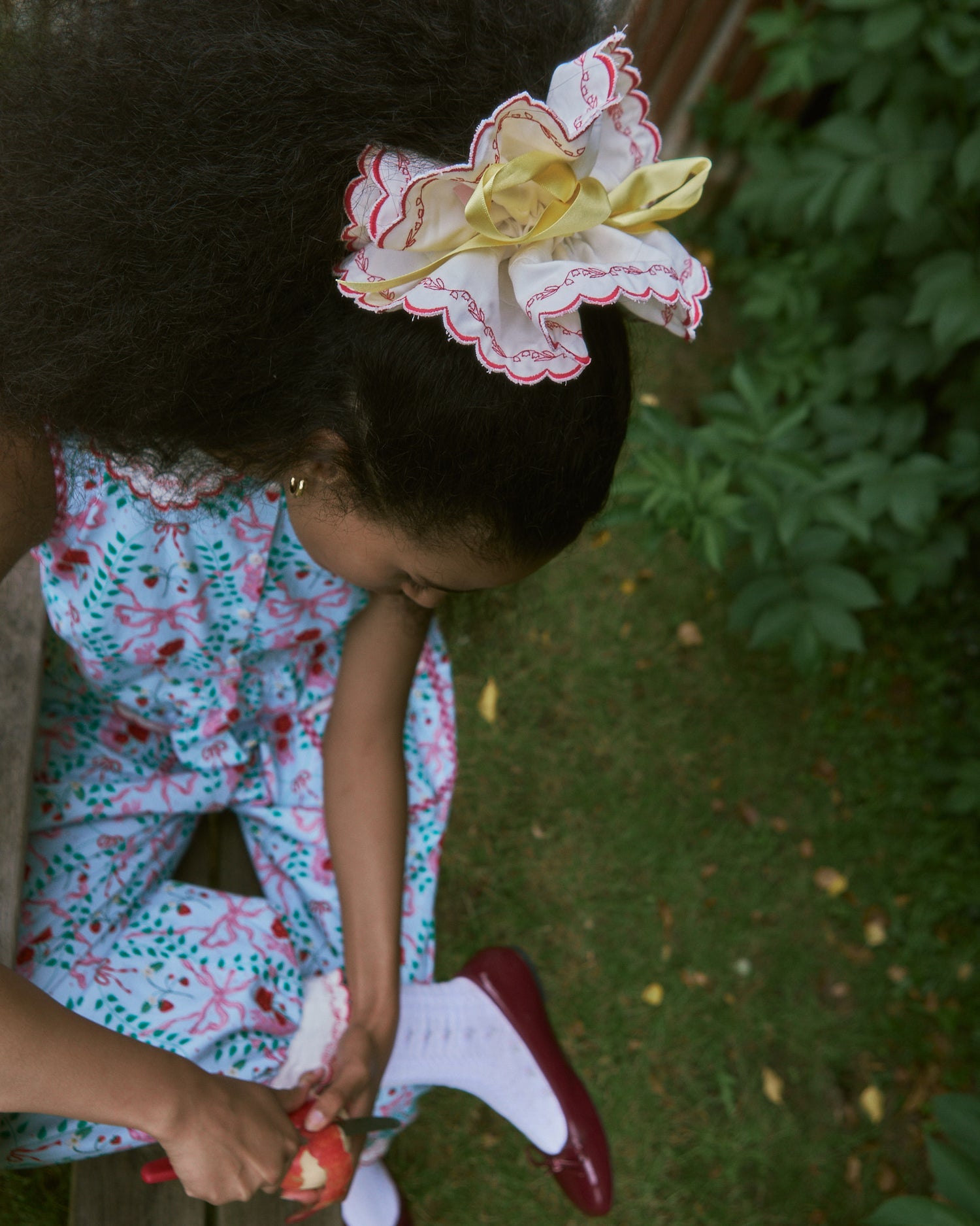 Hand-Drawn Picnic Print Organic Cotton - Decorated with Pink and Red Bows,...